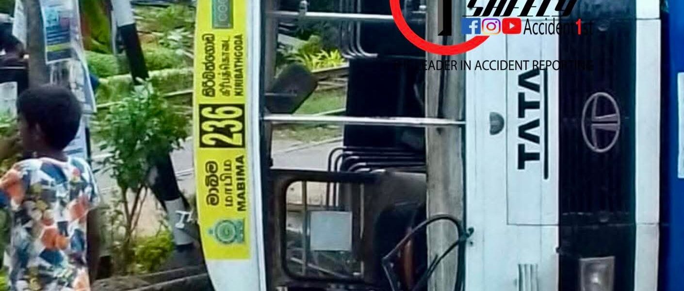 At least 12 people, including nine schoolchildren, were injured this afternoon (19) when a bus carrying students overturned near the railway crossing between Ragama and Batuwatta.
