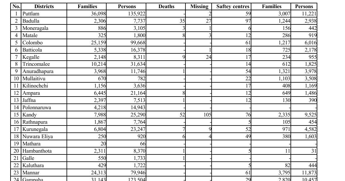 A total of 132 deaths have been reported so far, and 171 people are still missing due to the severe weather across Sri Lanka.