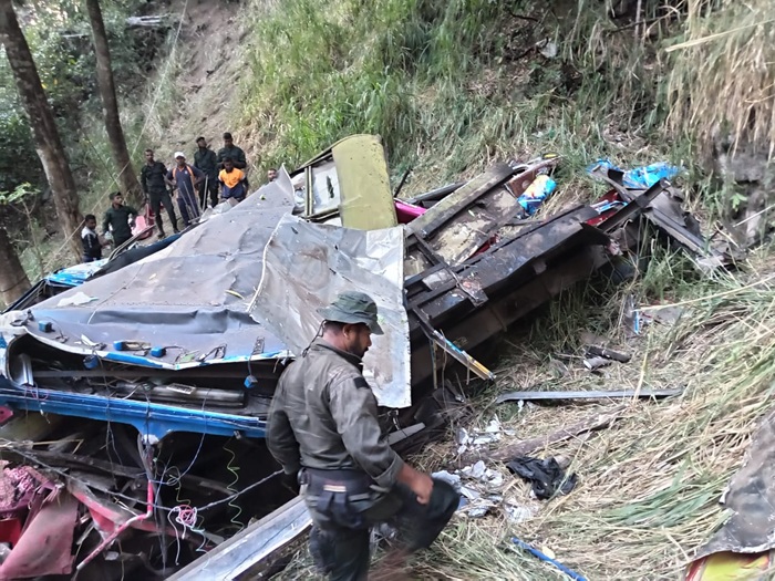 According to the Sri Lanka Army, a private bus carrying pilgrims from the Tangalle area met with an accident around 9:20 PM yesterday, overturning into a ravine near Mount 07 Hotel on the Ella–Wellawaya road, close to Ravana Falls.