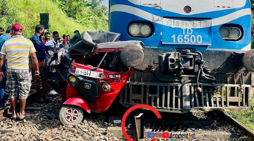 A three-wheeler driver was killed when his vehicle was hit by a fast train at the Walpola railway crossing early Monday. His wife and mother were seriously injured and admitted to Ragama Hospital.