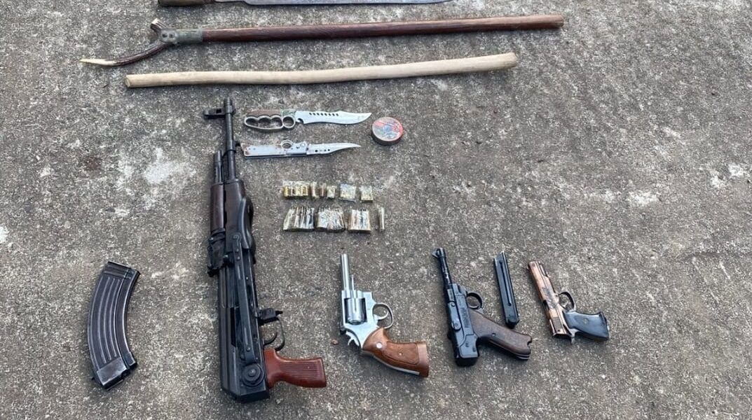 Officers recovered a T-56 firearm with a magazine and 14 bullets, a pistol with a magazine, nine 2.5mm rounds, nine 9mm rounds, three swords, and two knives during the operation.