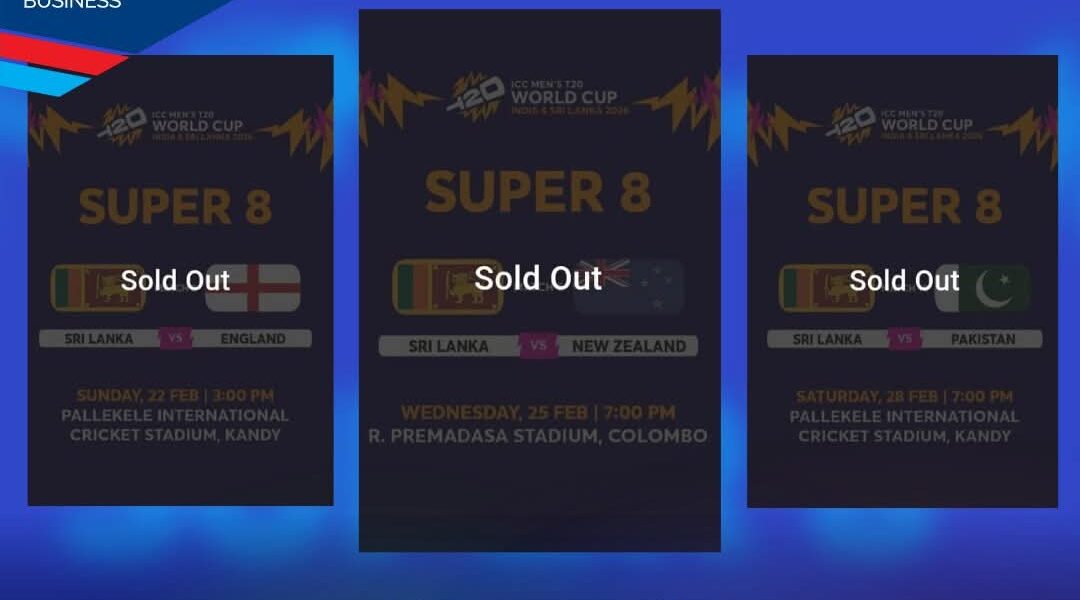 All Sri Lanka fixtures in the Super 8 stage of the ICC Men’s T20 World Cup 2026 have been sold out, according to the official ICC ticketing platform.