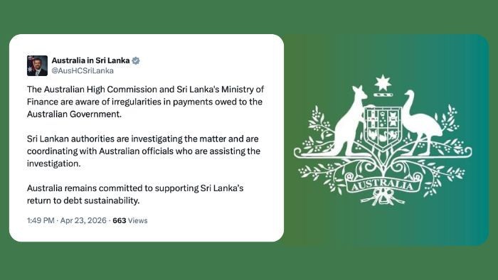 The Australian High Commission in Sri Lanka has confirmed that both the mission and Sri Lanka’s Ministry of Finance are aware of irregularities in payments owed to the Australian Government.