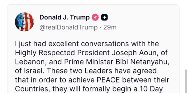 Trump: Israel, Lebanon Agree to 10-Day Ceasefire
