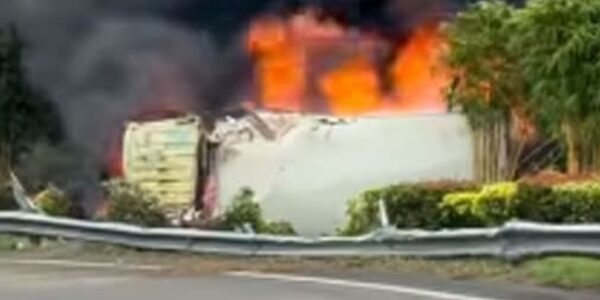 Three Injured as Lorry Catches Fire on Southern Expressway