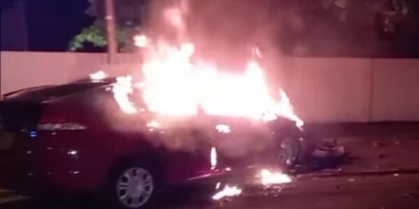 A vehicle was completely destroyed in a fire that broke out at Thummulla Junction in Colombo last night. Video footage circulating online shows the Colombo Fire Brigade attempting to douse the flames as the vehicle was engulfed in fire. The…