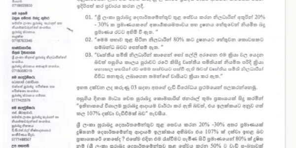 The Unity of Excise Trade Unions has strongly protested a statement made by Excise Commissioner General M.B.N.A. Pemaratne during a trade union meeting held on October 17. In its statement, the union questioned how the Commissioner General could claim that…