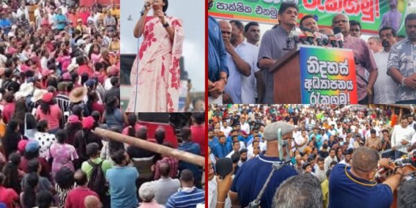 Two protests were held today (10) in Matugama, turning the town into a focal point for opposing demonstrations. A protest organized by women government supporters condemned the atrocities targeted at women by the opposition. The protest was attended mainly by…
