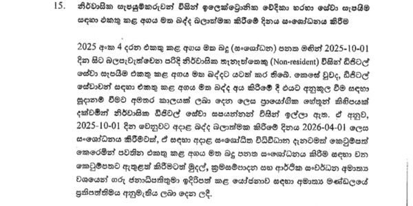 The government has amended the date for the implementation of Value Added Tax (VAT) on services supplied by non-resident persons through electronic platforms to consumers in Sri Lanka. The Finance Ministry announced that the effective date, which was previously scheduled…