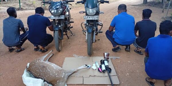 Five suspects have been apprehended for hunting a pregnant spotted deer in the Wilpattu National Park on Wednesday (28). The arrests were made by wildlife officers from the Kukulkatuwa Beat Office of the Wilpattu National Park who were patrolling the…