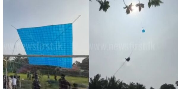 Watch: Youth dragged into the air while flying giant kite in Jaffna
