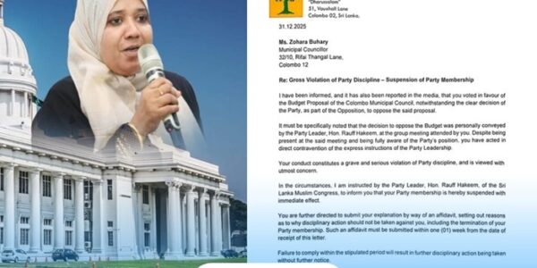 The Colombo District Court has issued an interim injunction preventing the enforcement of a letter issued by the Sri Lanka Muslim Congress (SLMC) that removed Colombo Municipal Councillor Sohara Buhari from party membership. The SLMC had removed Sohara Buhari from…