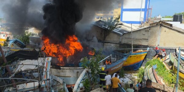 A massive fire has broken out on several boats docked at the Galle Fisheries Harbour. The Galle Municipal Council Fire Unit, along with the Navy, the Galle District Disaster Management Unit, and members of the fishing community, have brought the…
