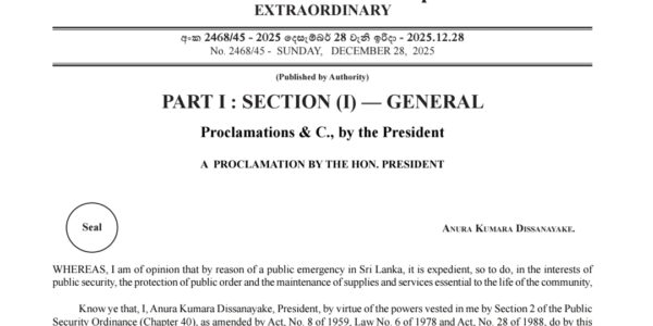 An extraordinary gazette notification has been issued further extending the state of public emergency. The post State of Emergency further extended appeared first on Newswire.