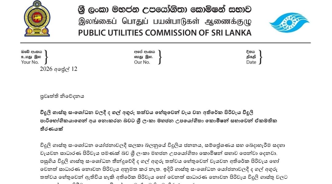 According to the PUCSL, this decision is aimed at ensuring that electricity consumers are not burdened with costs deemed unreasonable in the pricing process. (Newswire)
