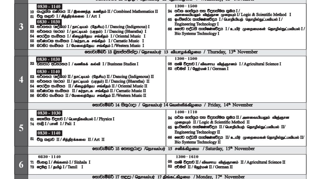 The 2025 A/L examination will be held from November 10 to December 5, covering all major subject streams.