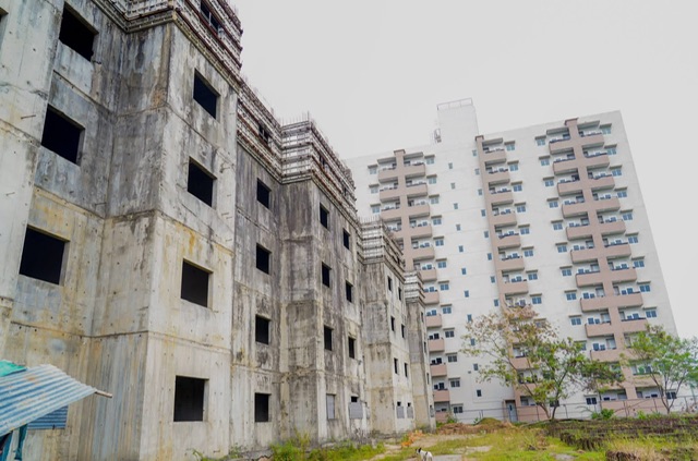 The government has taken steps to resume and complete the stalled apartment complex on Colombage Mawatha, Kirulapone, through a fresh tender process.