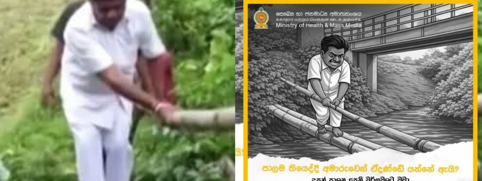 Social media users claimed the illustrated figure bore a resemblance to Opposition Leader Sajith Premadasa, who was previously photographed crossing a makeshift plank bridge during a public event.