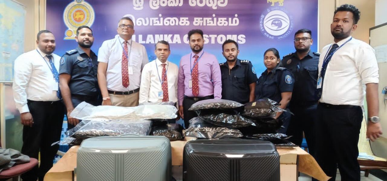 During the inspection, Customs officers discovered 32.159 kilograms of cannabis concealed inside their luggage. The estimated street value of the seized drugs is approximately Rs. 321.59 million.