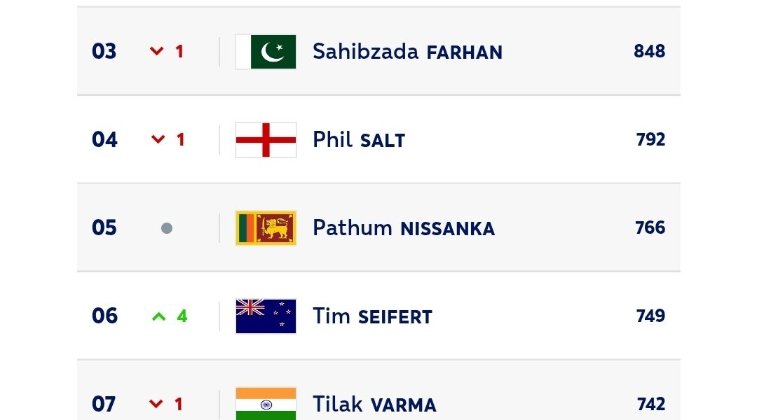 Sharma is currently on 875 rating points, his 21-ball 52 against New Zealand in the final of the ICC Men’s T20 World Cup 2026 at the Narendra Modi Stadium ensuring he still leads the table, while Kishan’s 52 off 25 balls against the Kiwis and 39 off 18 against England in the semifinal have helped him leapfrog Phil Salt of England and Sahibzada Farhan of Pakistan into second place.