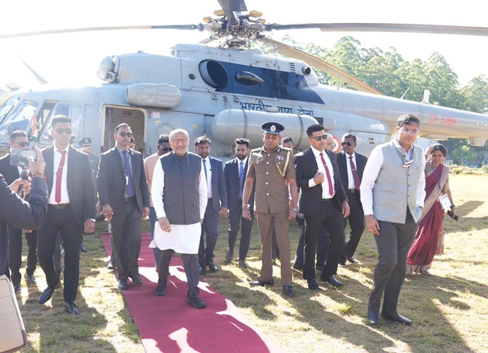 Indian Vice President C.P. Radhakrishnan visited Nuwara Eliya this morning (20) to inspect progress on the Indian Housing Project, which is being implemented for the estate Tamil community of Indian origin.