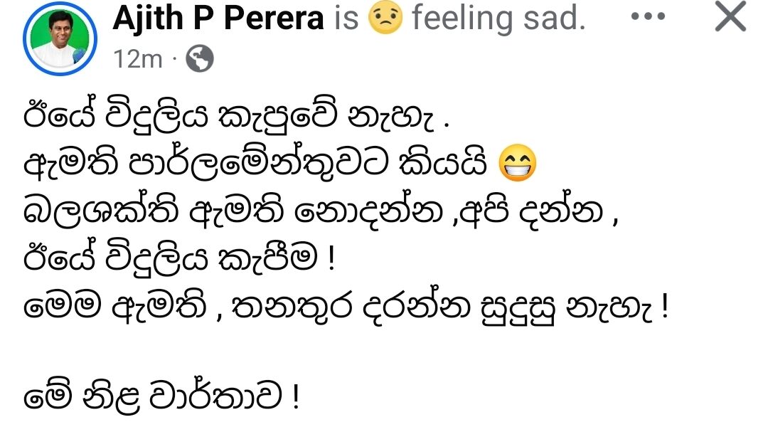Opposition MP Ajith P. Perera has criticised the government over power interruptions, questioning the Energy Minister’s claim that no power cuts had taken place.