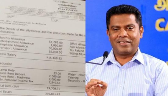 The issue was raised during a Cabinet media briefing after details of MPs’ salaries were circulated earlier this month by MP Ramanathan Archchuna, with questions over why the Advance Personal Income Tax (APIT) tax component appeared lower than that of private or public sector employees earning similar incomes.