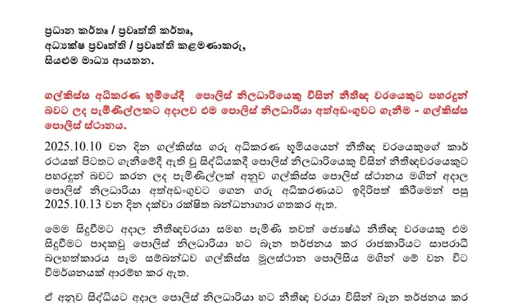 The Mount Lavinia Police have launched an inquiry into the conduct of a lawyer involved in Friday’s (10) incident at the Mount Lavinia Magistrate’s Court premises, where a police officer allegedly assaulted the attorney.