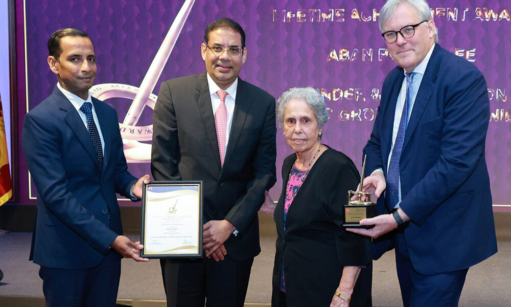 Mrs. Aban Pestonjee, Chairperson of the Abans Group and one of Sri Lanka’s most influential business leaders, has been honoured with the Lifetime Achievement Award at the SLID–ACCA National Corporate Director Awards 2025, in recognition of her extraordinary contribution to corporate leadership, governance and entrepreneurship.