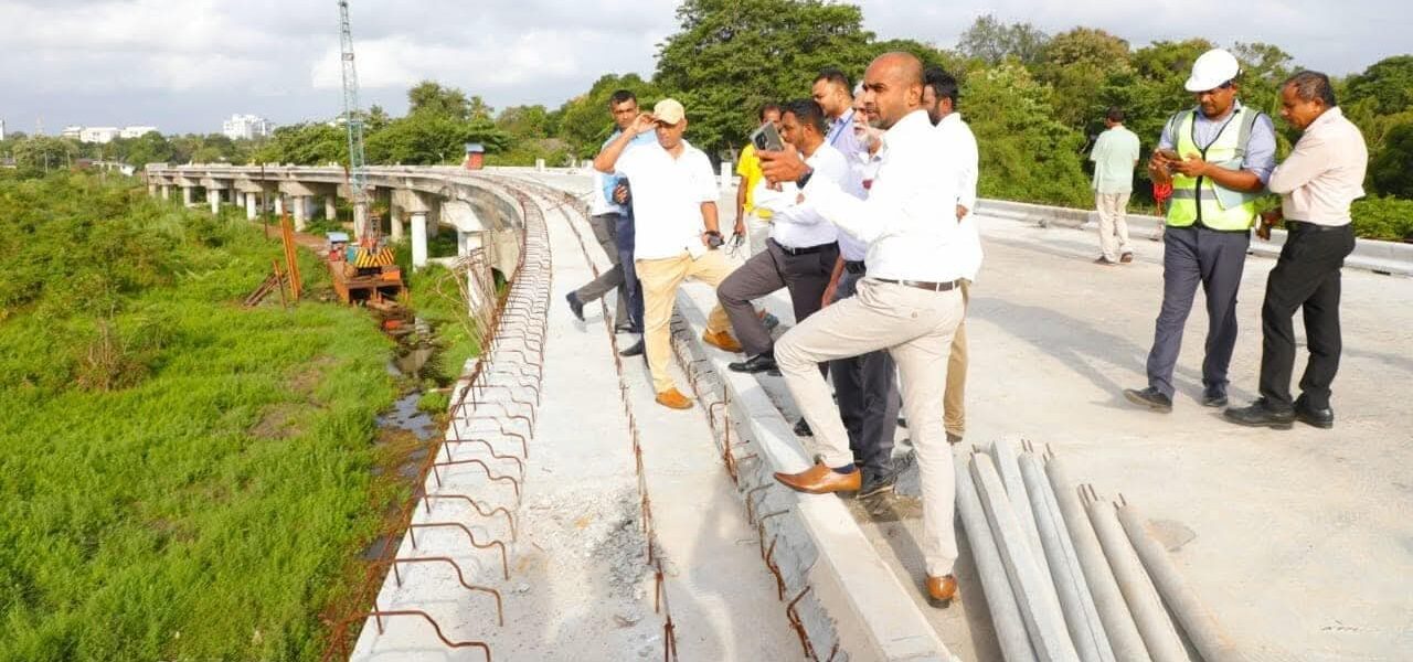 Construction of the long-delayed Nawla–Angampitiya Bridge, halted midway due to the economic crisis and other factors, has resumed under the State Development & Construction Corporation (SD&CC) and is now in its final stages.