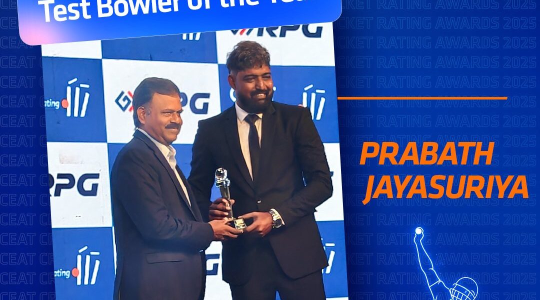 Sri Lanka’s Prabath Jayasuriya was named the CEAT Men’s Test Bowler of the Year at the CEAT Cricket Awards held in Mumbai tonight, recognizing his precision, consistency, and match-winning spells in the longest format.