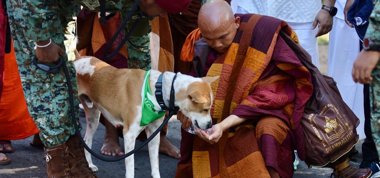 Speaking during a meeting attended by K. D. Lalkantha, the officer said “Aloka the Peace Dog,” the certified service canine accompanying the procession from Dambulla, became unwell and received treatment after heavy crowds and disruptions along the route yesterday.