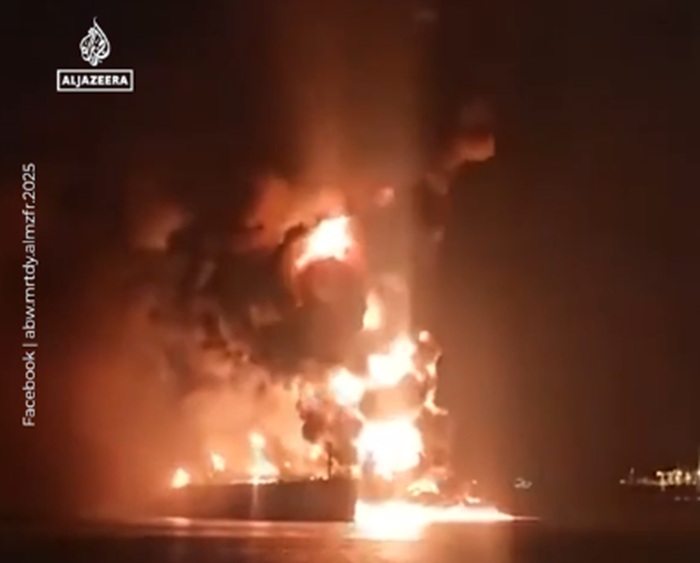 “A boat belonging to the Iraqi Ports Company rescued 25 crew members from the two vessels, and the fires are still burning on both ships,” Farhan al-Fartousi, director general of the state-run General Company for Ports of Iraq, told Reuters.