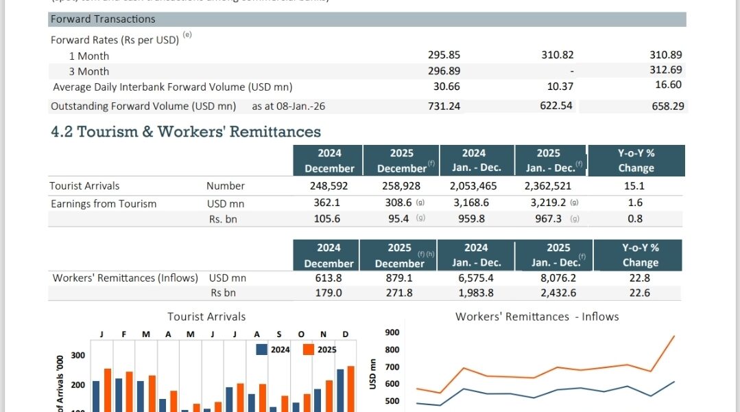 Meanwhile, gross official reserves were provisionally estimated at US dollars 6,825 million as at end-December 2025. This includes proceeds from the People’s Bank of China swap arrangement. (Newswire)
