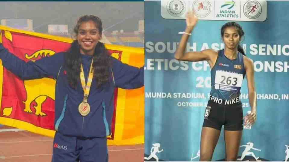 The 26-year-old sprinter from Viharamahadevi GC, Kandy, won gold medals in the women’s 100m, 200m, and 4x100m relay events, rewriting the record books and marking one of the finest individual performances by a Sri Lankan athlete at the regional meet.