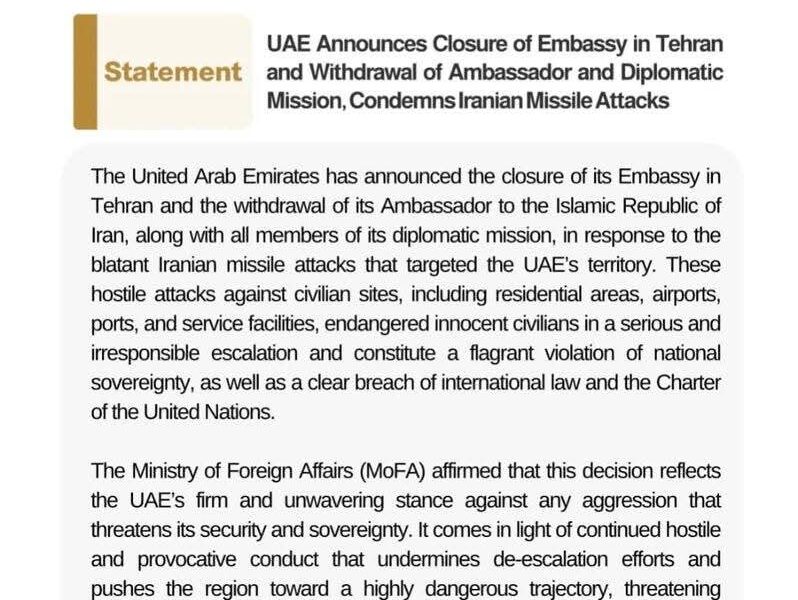 The post UAE withdraws diplomatic mission from Iran appeared first on Newswire.
