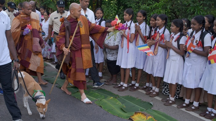 The Walk for Peace officially commenced yesterday from Dambulla, led by Ven. Pannakara Thero, and ‘Aloka the peace dog’, a certified service canine.