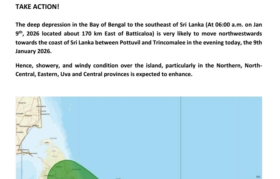 HomepageUncategorizedWarning for deep depression : 6.30 am update Warning for deep depression : 6.30 am update Posted on January 9, 2026 The post Warning for deep depression : 6.30 am update appeared first on Newswire. LEAVE A RESPONSE Cancel replyYour email address will not be published. Required fields are marked *Comment * Name * Email * Website Save my name, email, and website in this browser for the next time I comment. Δ Post navigation Previous PostStrong winds & Heavy falls : Which areas expected ? Next PostPolice provide update on six illicit liquor deaths in Wennappuwa