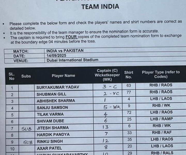 DP World Asia Cup 2025 – Match 6: Pakistan win toss and opts to bat first