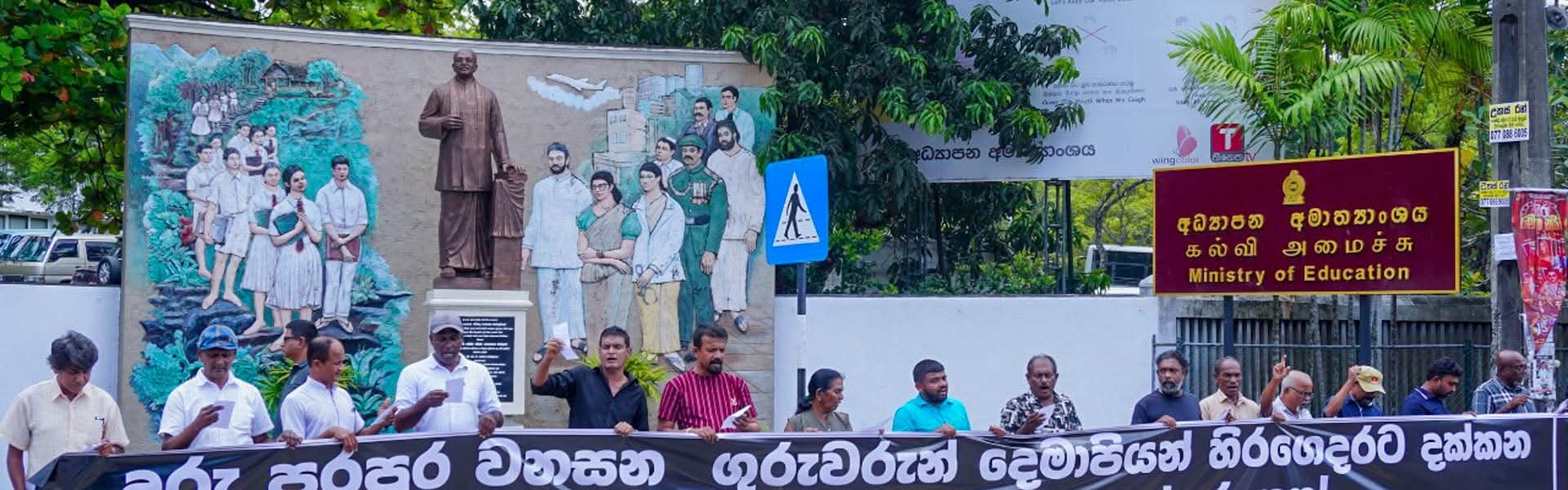 The protest, held in front of the ministry’s Isurupaya premises, was led by NFF National Organizer Jayantha Samaraweera. Representatives from education sector trade unions also joined the demonstration.