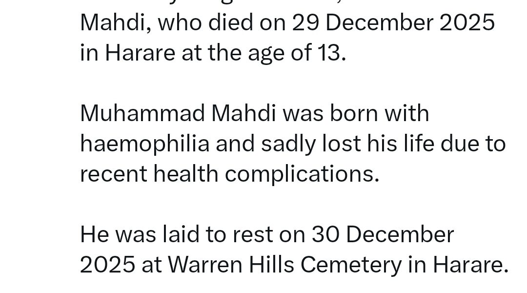 In a brief statement, the ZC revealed that Mahdi was born with haemophilia – a medical condition in which the ability of the blood to clot is severely reduced, causing the sufferer to bleed severely from even a slight injury.